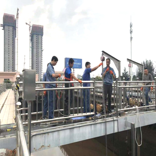 寶雞金信安污水處理廠已投入運行十多年,設備設施使用時間長,普遍存在磨損、腐蝕老化及故障率高等問題,尤其是水下設備的檢修迫在眉睫。污水處理廠水下設備檢修的慣常做法是先停產,后實施,但停產不僅面臨經濟上的損失,還可能受到環保主管單位的問責,怎樣實現不停產檢修水下設備,成為了公司面臨的一個重要難題。